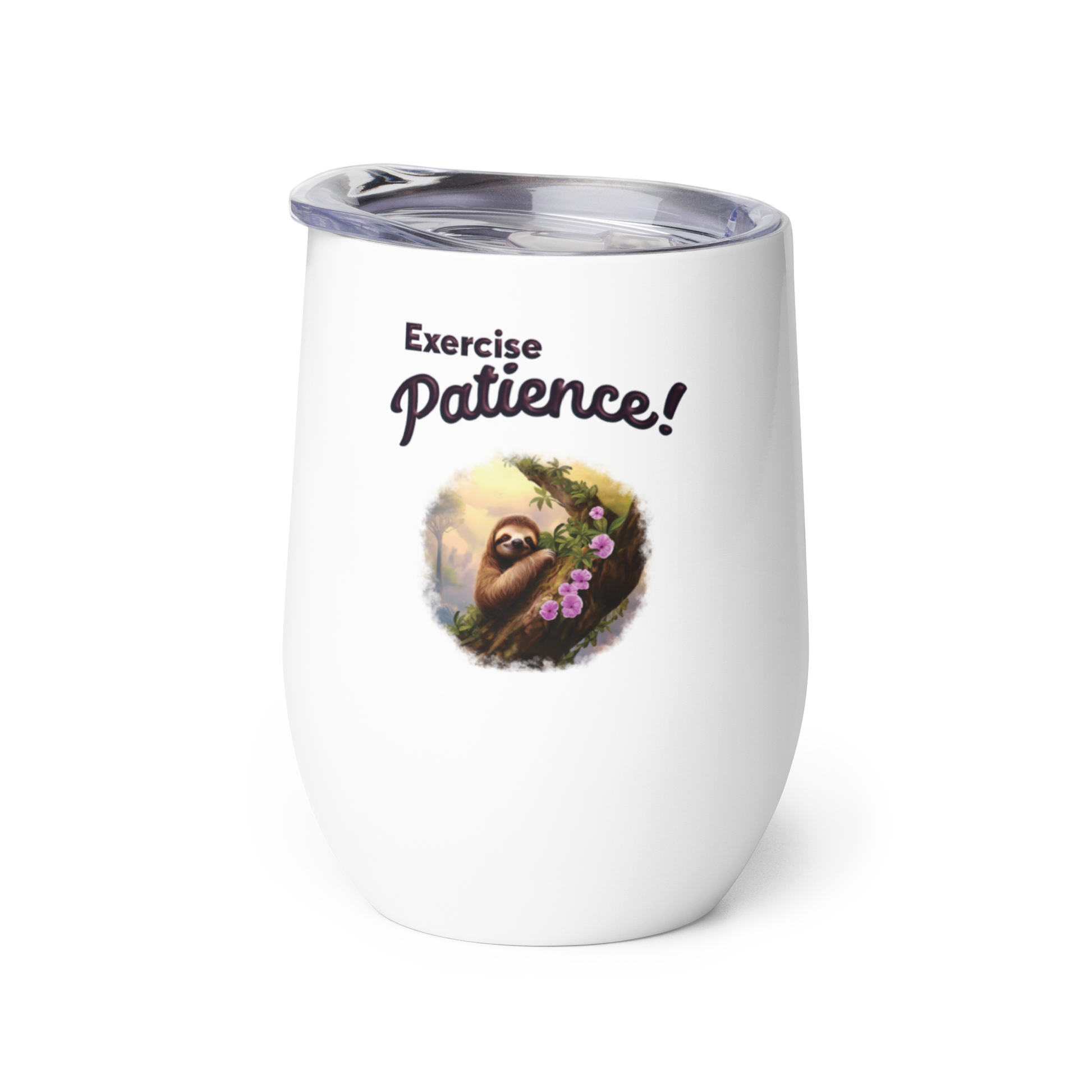 This wine tumbler is more than a functional accessory; it's a reminder that life, like a fine wine, is best enjoyed when savored slowly. With each delicate sip, let the 'Exercise Patience!' mantra resonate in your heart, inviting you to savor the exquisite flavors of the present moment. So, whether you're enjoying a quiet evening or a joyous occasion, let the sloth be your vinous guide to a more unhurried and delightful existence.